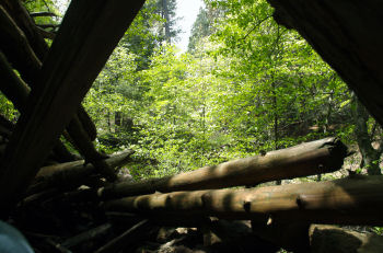 ![]() View of Dogwoods through a kid's fort in Cedarpines Park. |
